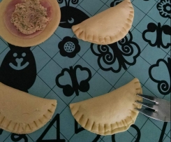 Dann die Teigkreise umklappen und mit einer Gabel festdrücken.