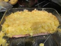Das ist mein schon angefressenes Gratin (mit einer Lage Fleischkäs drunter).