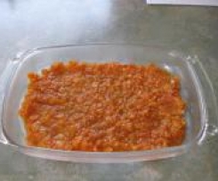 - alles 10 min. / 100 °C / Stufe 1 köcheln; in eine Auflaufform umfüllen