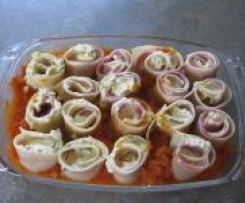Ich hab den Nudelteig einfach selbst gemacht und die Röllchen gelegt, nicht gestellt. Mit der Füllung war ich skeptisch. Aber es war trotzdem lecker. Danke fürs Rezept 😊