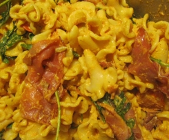 .... und zusammen mit dem Schinken und Rucola servieren. Wer mag, reicht noch ohne Fett geröstete Pinien- oder Sonnenblumenkerne und geriebenen Parmesan dazu. Man kann natürlich auch gleich alles zusammen im Topf vermischen und servieren