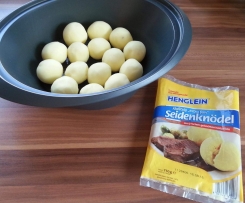 Wer Zeit hat, kann auch die Klöße selber machen, aber wir machen das gerne, wenn wir schnell was auf dem Tisch haben wollen.