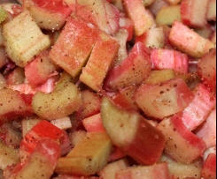 Die Zuckermischung über den Rhabarber steuen und einwirken lassen.
