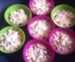 Eiermasse in Muffinförmchen füllen maximal 3/4 voll und mit etwas Käse bestreuen