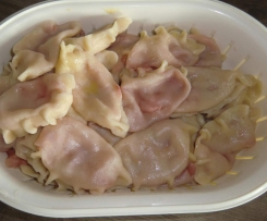 6. Teigtaschen in ein Topf mit kochendes Wasser geben und 10-15 Min. kochen.