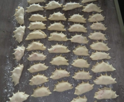 Musste sehr viel mehr unterkneten und trotzdem sind die Wareniki mir teilweise beim Kochen aufgerissen.