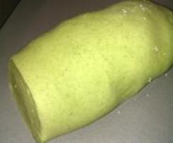 Achtung! wenn die Nudeln nicht sofort gekocht werden, leicht mit Mehl bestäuben und auflockern.Eine Scheibe Teig abschneiden im Mehl wälzen und auf eine dicke von 1,5mm ausrollen (zwischendurch undabschließend mit Mehl bestäuben) beiseite legen und die nächste Scheibe ausrollen...