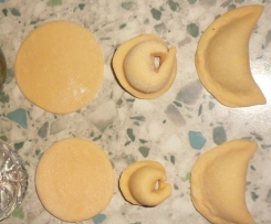 Habe heute die Tortellini ausprobiert.wollte schlau sein und mit der Nudelmaschine jeweils 2.Teigplatten herstellen .Ergebnis war schrecklich ,da der Teig zu sehr klebte ,ging also gar nicht .Dann Nudelholz ,brauchte sehr viel Mehl und dauerte lange ,da der Teig immer wieder einriss .Die Form stanzte nicht richtig ,denn zog ich sie aus dem Teig riss sie den umgebenden Teig mit .