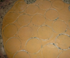 Mit einem Wasserglas oder türkischen Teeglas die Form ausstechen! Siehe Bild!!