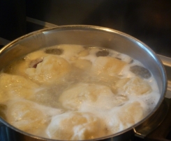 Wasser in einem großen Topf zum Kochen bringen. Die Knödel hineingeben und 10 Min. bei mittlerer Hitze ziehen lassen. Es geht bestimmt auch mit einem Varoma. Aber ich habe leider keinen, deshalb kann ich keine Angaben dazu machen.