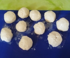 " Modus „Teig kneten“" . Den teig auf eine Arbeitsfläche oder Matte geben. Wenn der Teig klebt, etwas Mehl hinzugeben. Den Teig in 10 Stücke teilen. Jedes Stück zu einer Schale formen.