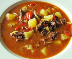 Sehr lecker, Danke für dieses Rezept! Habe gut 500 g mehr Gulasch gehabt und die Gewürze verdoppelt - bis auf das scharfe Paprikagewürz, weil ich nicht so scharf esse. Dadurch musste ich die Suppe in dem großen Topf kochen, mit dem ich das Fleisch angebraten habe - hat aber trotzdem gut geklappt. Mein Thermi 31 wäre ja sowieso zu klein gewesen... Habe so für dieses Rezept nur die Zwiebeln im Thermi gehäckselt.