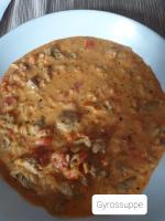 Mein Mann hat sich Gyrossuppe gewünscht...und diese sollte es sein...habe statt Sahne einen Becher creme fraiche Kräuter verwendet, den Schmelzkäse auf 100 g. erhöht und noch eine Hand voll griechischer Nudeln direkt beigemischt...eigentlich sollte die Suppe für 2 Tage reichen....tja, da muss ich mir jetzt was anderes einfallen lassen...Danke fürs einstellen.