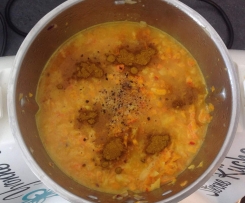 Als Basis-Rezept ganz okay, für uns aber etwas zu geschmacksarm. Ich habe noch sehr stark nachgewürzt mit Chilli, Paprika, Honig... Auch den Tipp mit der Kokosmilch würde ich beim nächsten Mal probieren.
