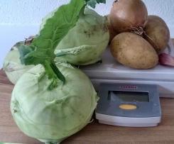- 3 Stück Kohlrabi, ca 850 g + Blätter