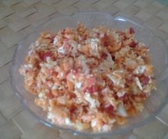 "Mixtopf geschlossen" geben und mit Hilfe des Spatels 4sec/ Stufe 5 zerkleinern- fertig.Dies ist auch ein Salat den ich gerne zum Frühstück esse, dazu gibt es Vollkornbrot. Er schmeckt aber auch sehr lecker als Beilage zu Fleisch, Fisch und Bratlingen.