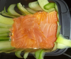 Mit den Lachsscheiben abdecken.Rest der KäseCreme draufstreichen.