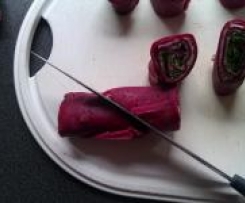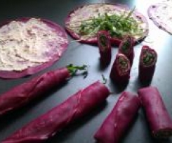 Die sind der Hammer. Ich habe einen Crepemaker benutzt, dadurch waren die Palatschinken sehr dünn. Auch habe ich den rote Bete-Saft durch Wasser ersetzt, da meine Esser leider nicht auf bunt stehen. Leider hatte ich dann auch noch zu wenig Frischkäse eingeplant, also hab ich noch Magerquark dazugegeben. Trotz allem hat es allen hervorragend geschmeckt und wir sagen danke für das tolle Rezept.