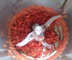 Chorizo in den Mixtopf geben und 3 Sek./Stufe 5 zerkleinern. Danach 4 Min./Varoma/