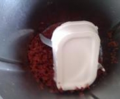 Ausgelassene Chorizo, Frischkäse, geriebenen Parmesan, Salz und Pfeffer in den Mixtopf zurückgeben und 40 Sek./Stufe 3-4/