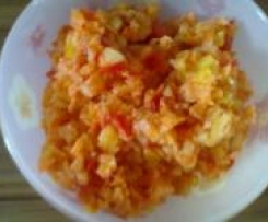 Habe zuerst die Karotten zerkleinert und dann erst den Rest zugegeben und noch mal zerkleinert. Für mich musste er noch ein wenig mehr gewürzt werden aber dann war es ein sehr leckerer Salat.