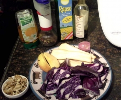 1. Die Birne, die Schalotte und den Rotkohl in den