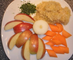 Ich habe mein selbst hergestelltes Sauerkraut dazu verwendet, weil ich für den Rest ein Rezept gesucht habe.