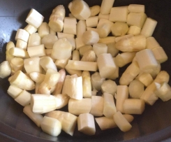 Den Spargel in ca. 2 cm große Stücke schneiden und in den Varoma geben.